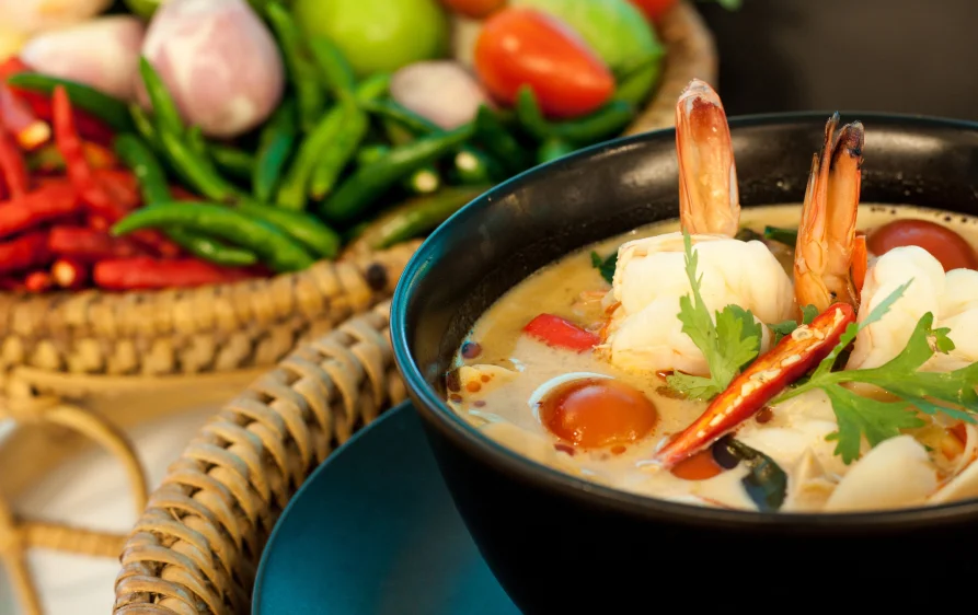 La cuisine thaïlandaise, riche en saveurs uniques et en ingrédients comme le curry, la menthe et la citronnelle, est très épicée et souvent associée à des sauces ou bouillons de poisson.